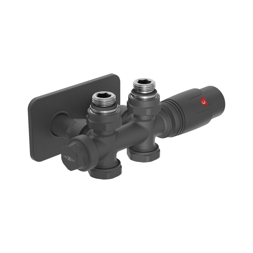 Mexen G00, Duplex termosztatikus készlet négyzet alakú burkolattal, ferde/egyenes csatlakozással DN50, antracit, W908-900-910-66