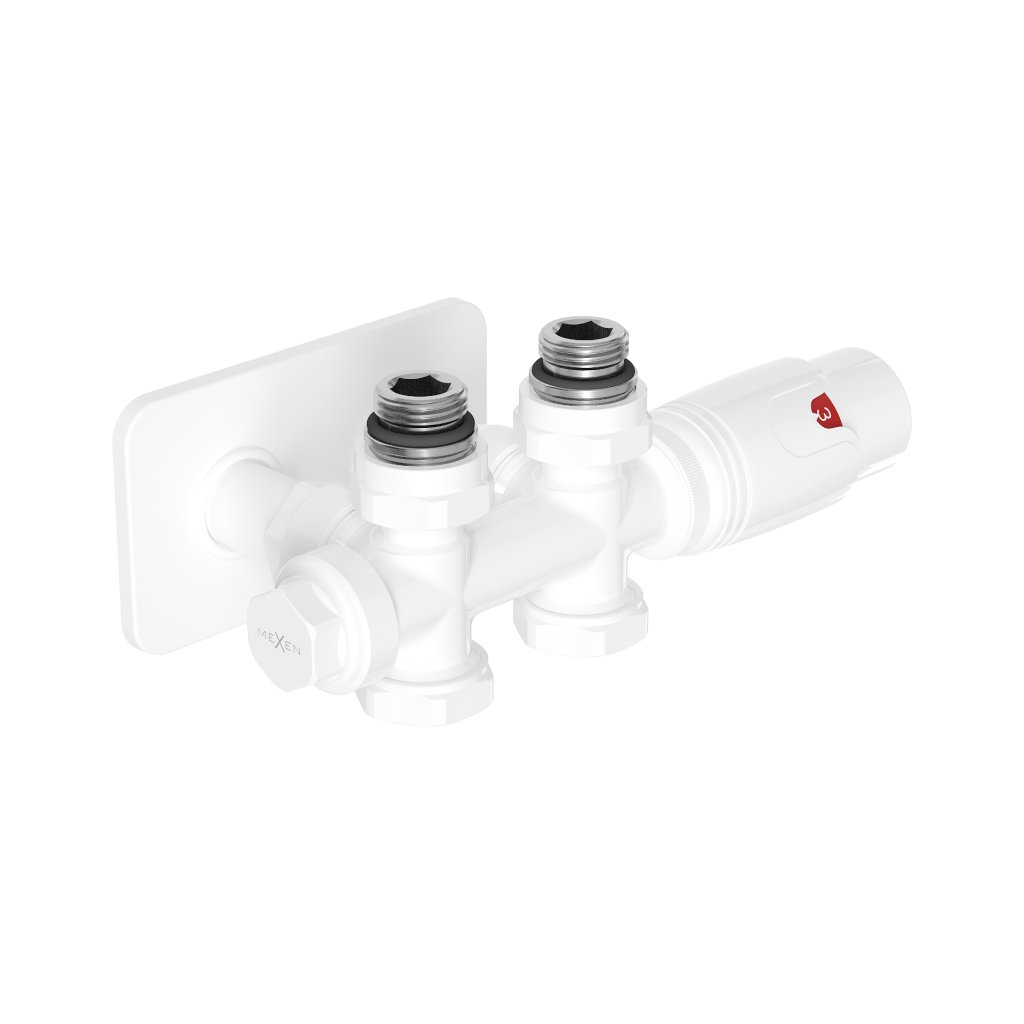 Mexen G00, Duplex termosztatikus készlet négyzet alakú burkolattal, szög/egyenes csatlakozás DN50, fehér, W908-900-910-20