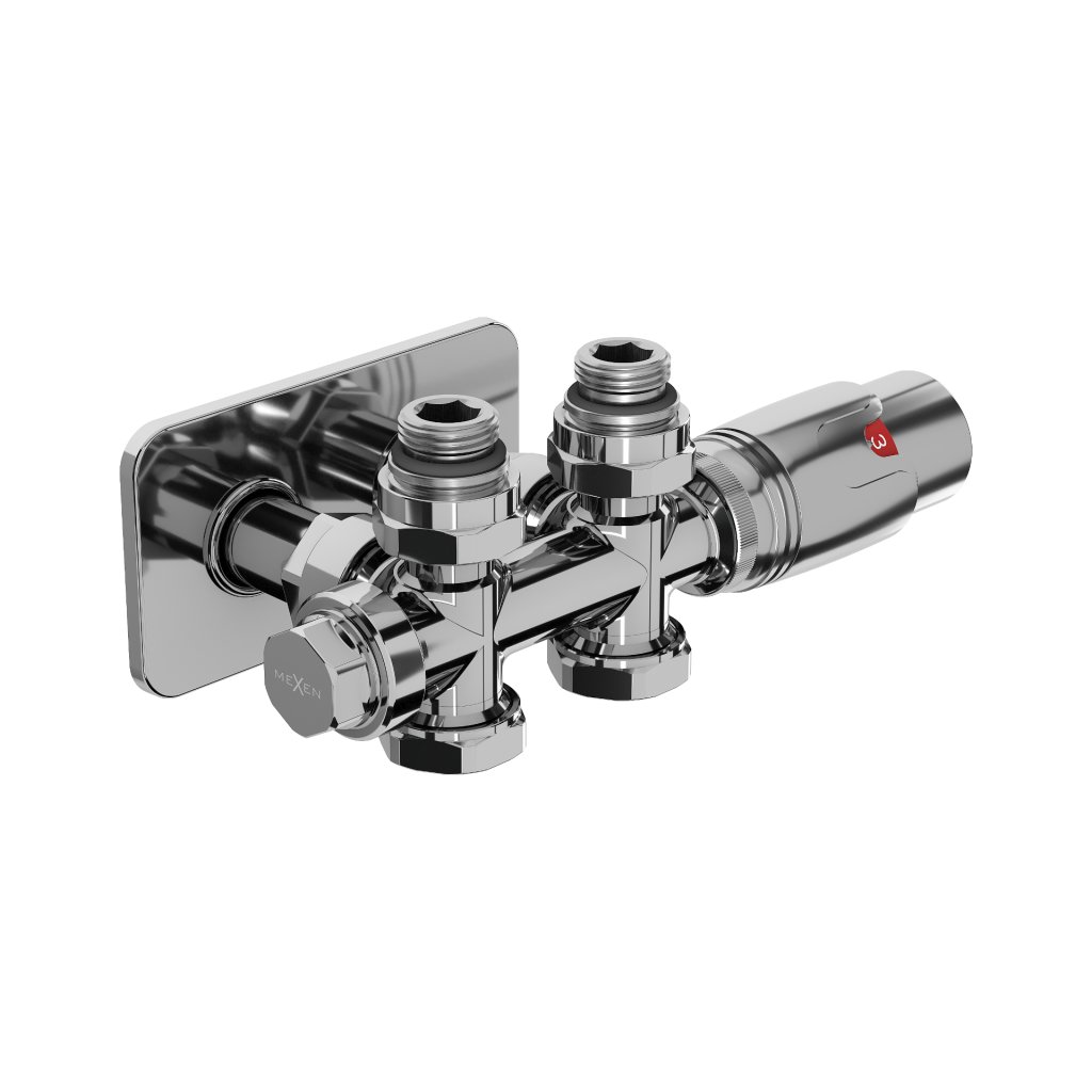 Mexen G00, Duplex termosztatikus készlet négyzet alakú burkolattal, szög/egyenes csatlakozás DN50, króm, W908-900-910-01