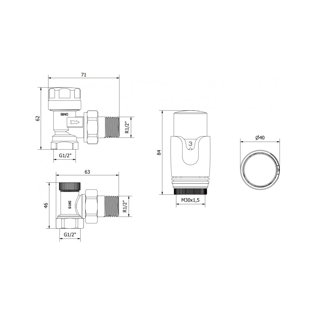 Mexen G00, sarokszelep G 1/2" termosztatikus fejjel M30x1,5 mm, antracit, W901-900-66