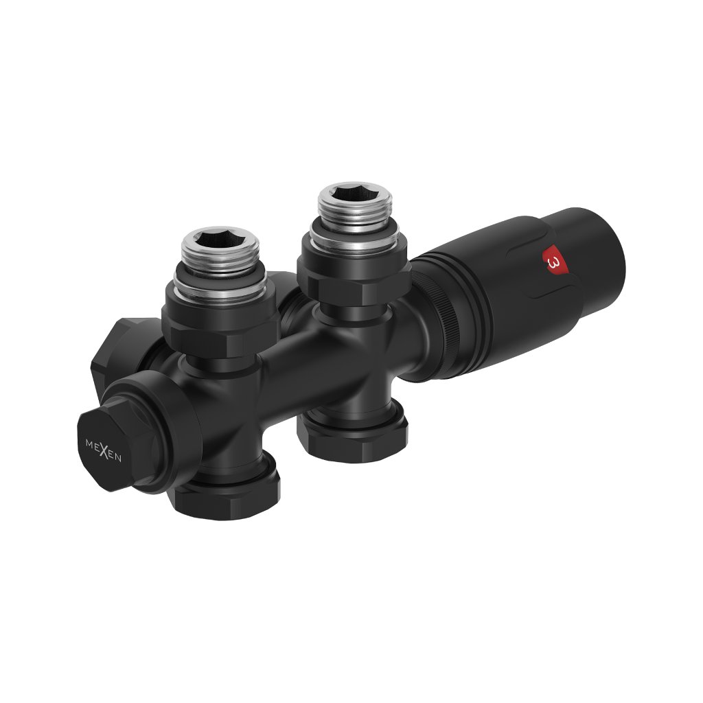 Mexen G00, termosztatikus készlet Duplex, szög/egyenes csatlakozás DN50, fekete matt, W908-900-70