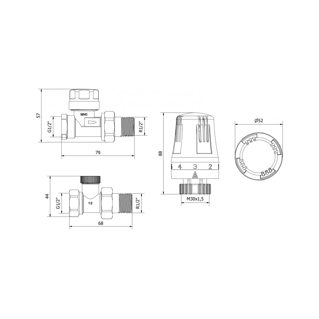 Mexen G01, közvetlen radiátorszelep G1/2" termosztatikus fejjel M30x1,5 mm, acél, W914-012-918-01