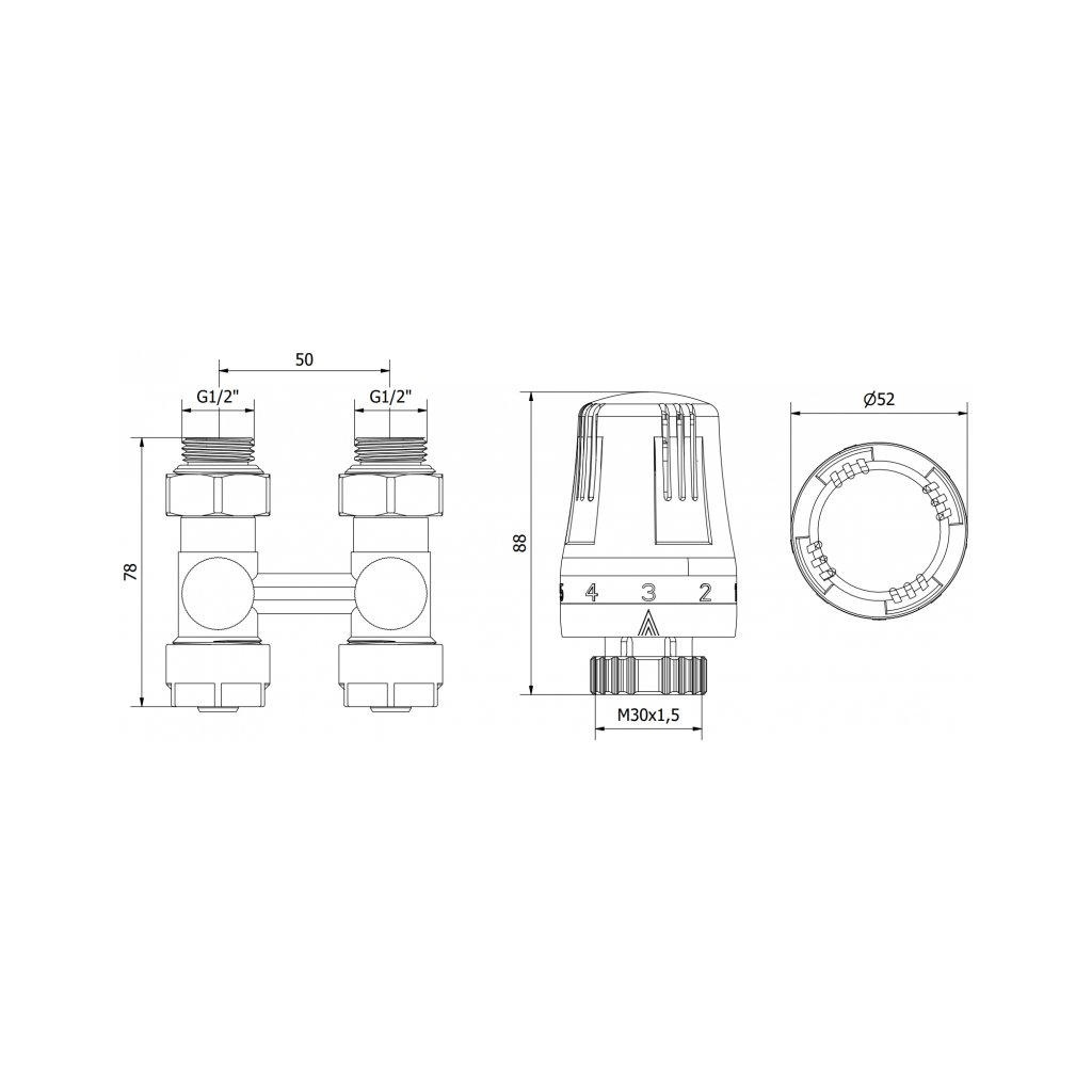 Mexen G01, termosztatikus készlet DN50, szögletes 1/2"x16 mm és termosztatikus fej M30x1,5 mm, acél, W912-016-918-01