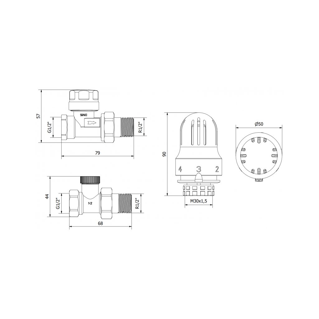 Mexen G04, közvetlen radiátorszelep G1/2" termosztatikus fejjel M30x1,5 mm, acél, W914-012-948-01