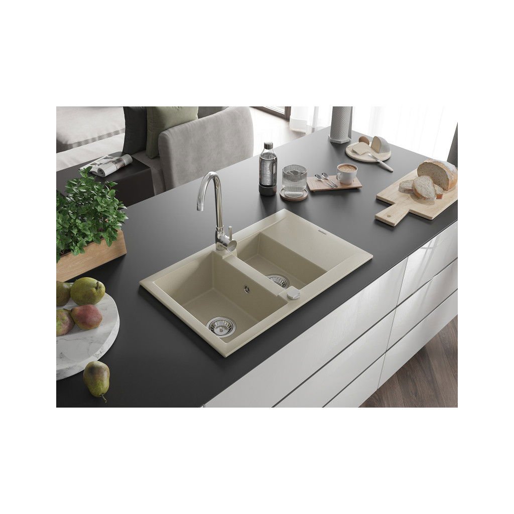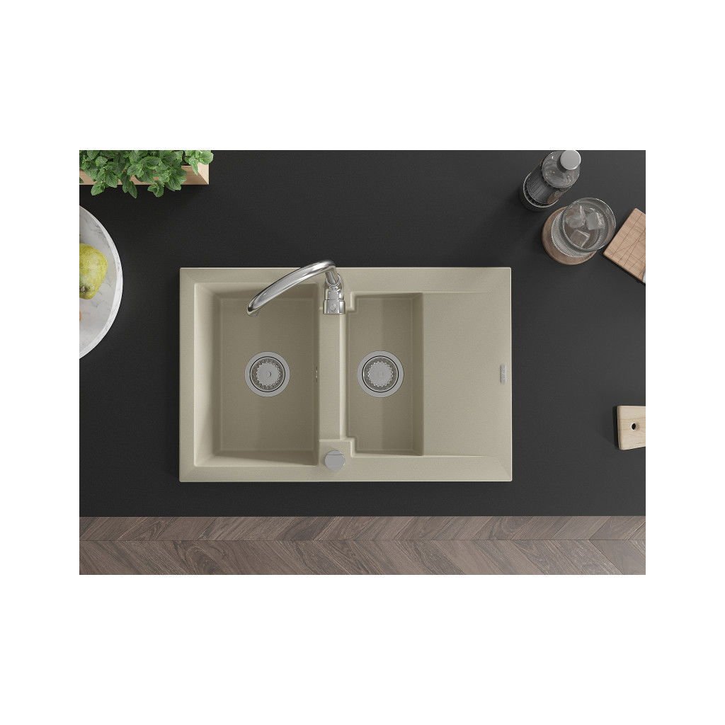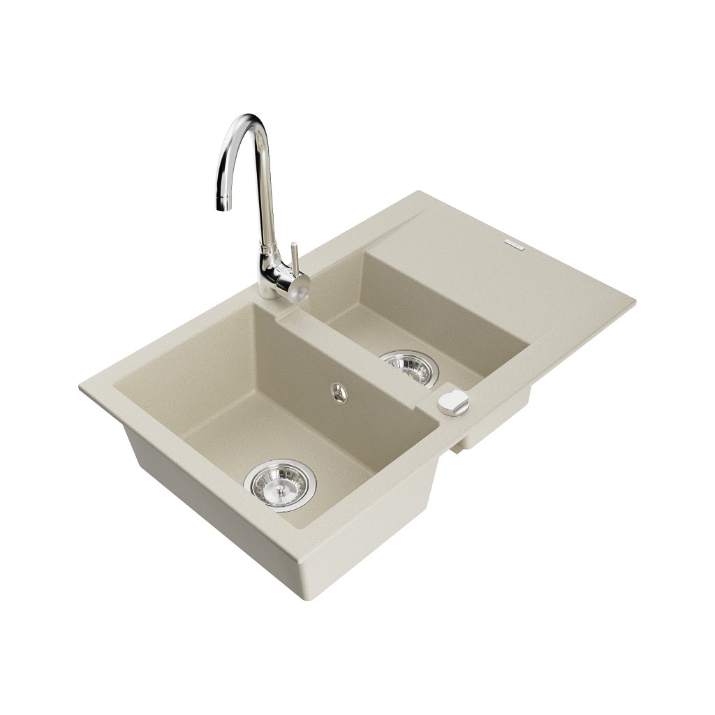 Mexen Gaspar, gránit mosogató 737x475x177 mm, 1,5 kamrás és Telma króm csaptelep, bézs, 6507-69-670200-00