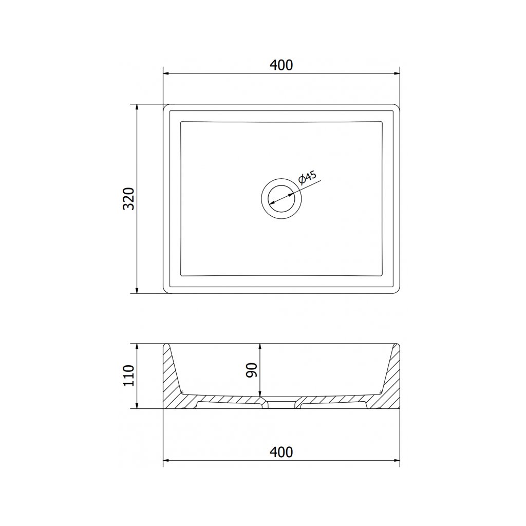 - Méretek: 400 x 320 x 110 mm