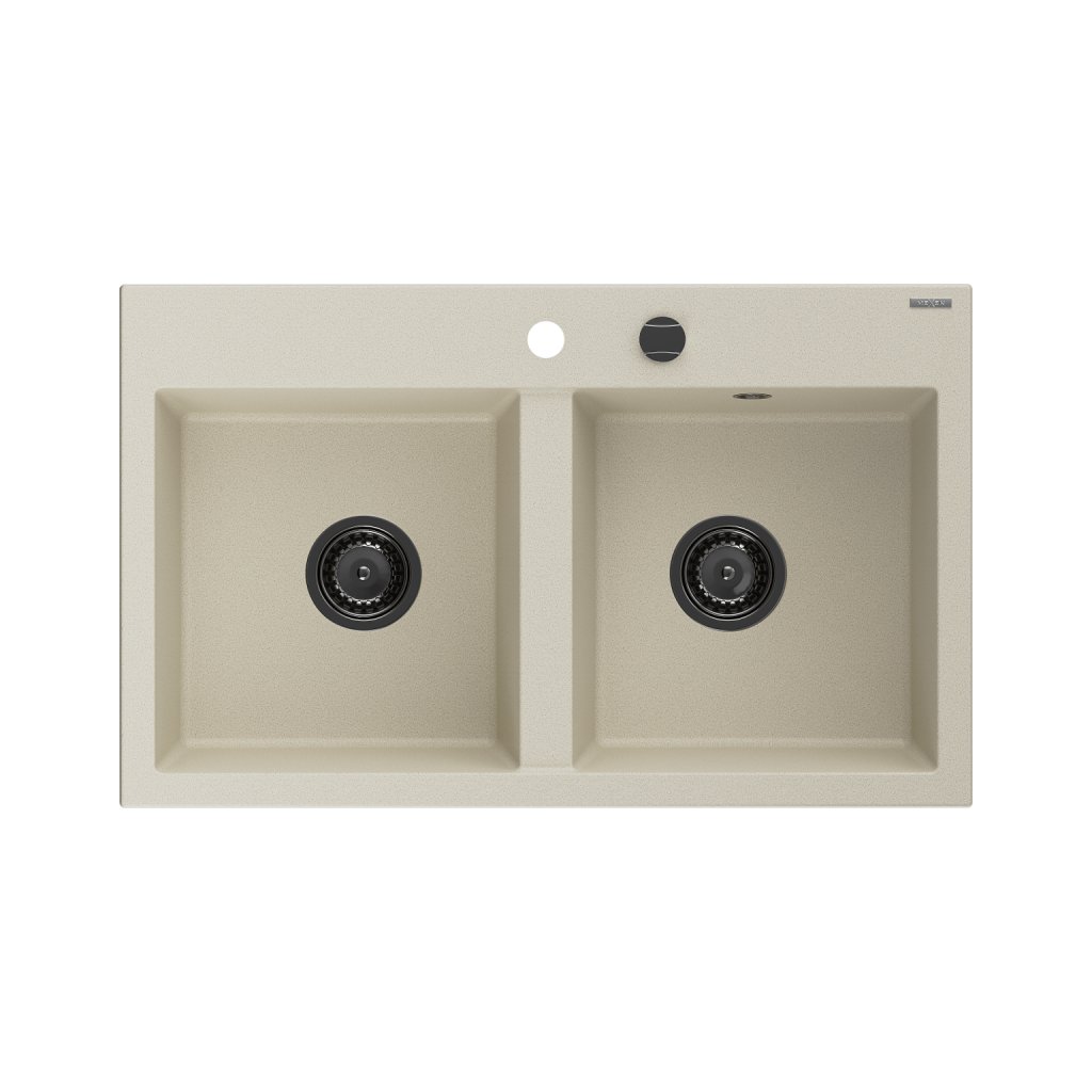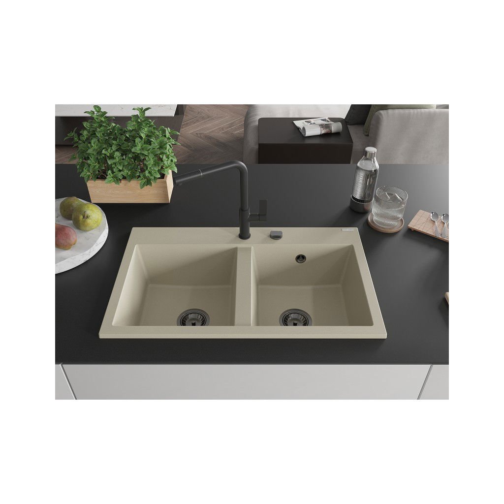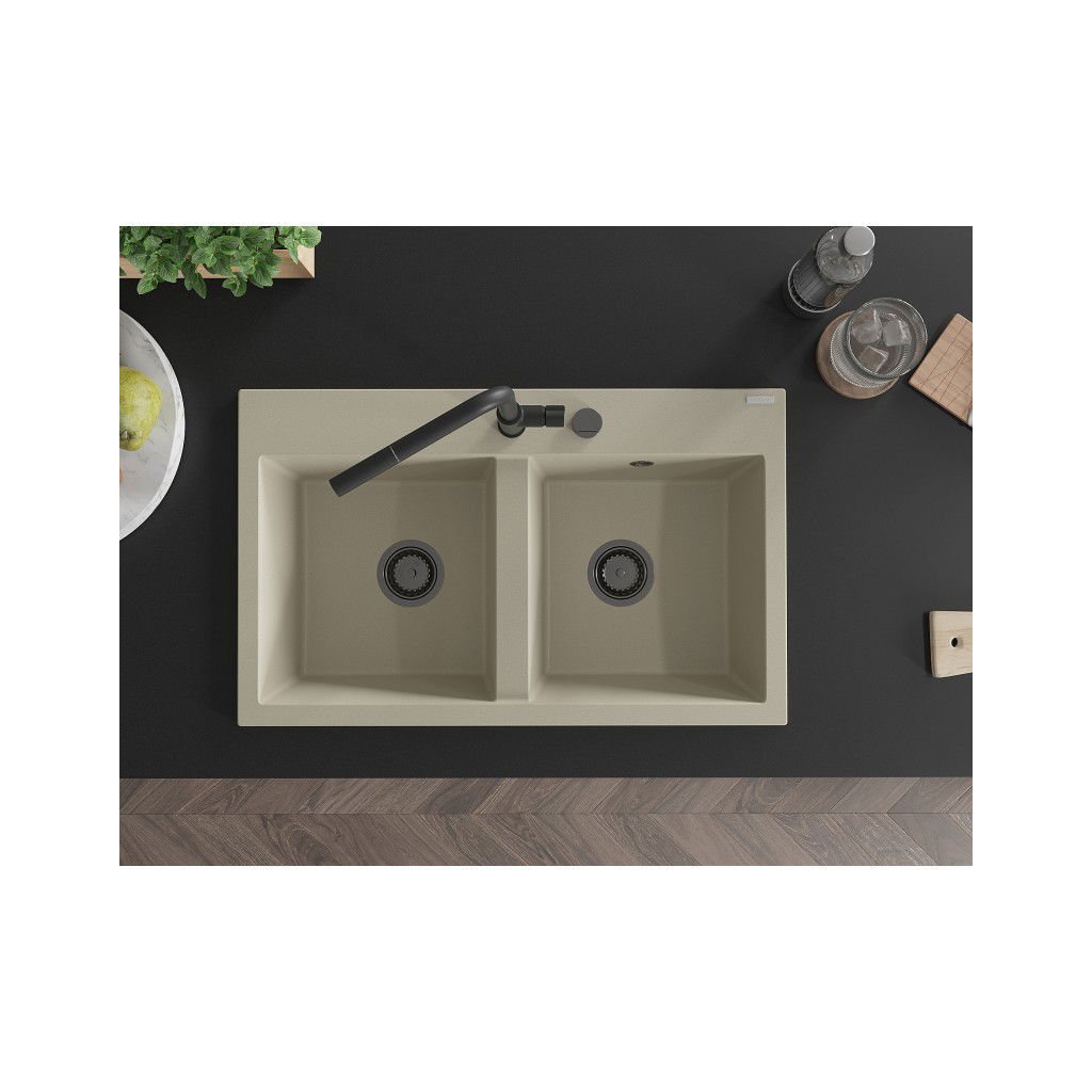 Mexen Hektor, 2 kamrás gránit mosogató 800x480x205 mm, bézs, grafit szifon, 6521802000-69-B
