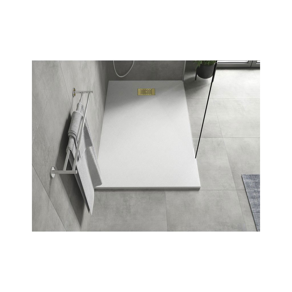 Mexen Hugo, négyszögletes zuhanytálca SMC 140 x 80 cm, fehér, arany huzat, 42108014-G