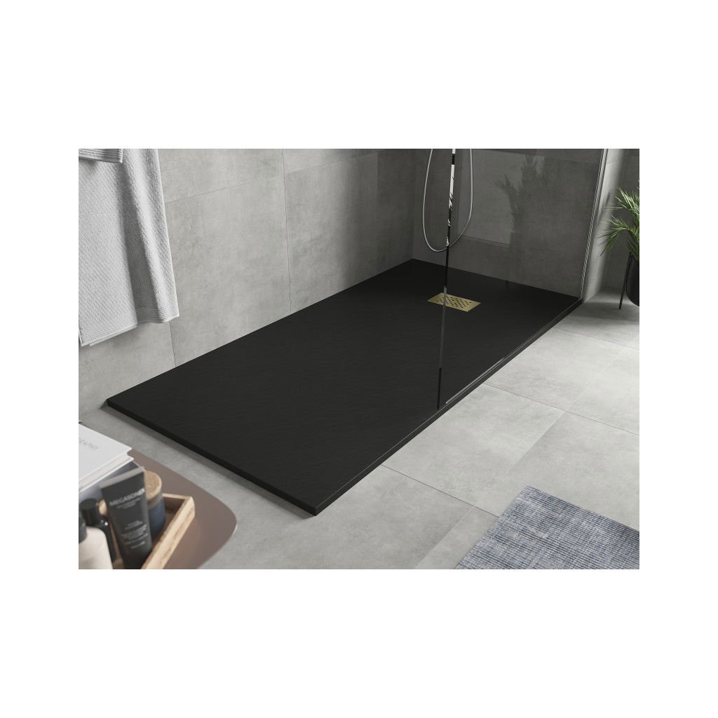 Mexen Hugo, négyszögletes zuhanytálca SMC 180 x 90 cm, fekete, arany kupak, 42709018-G