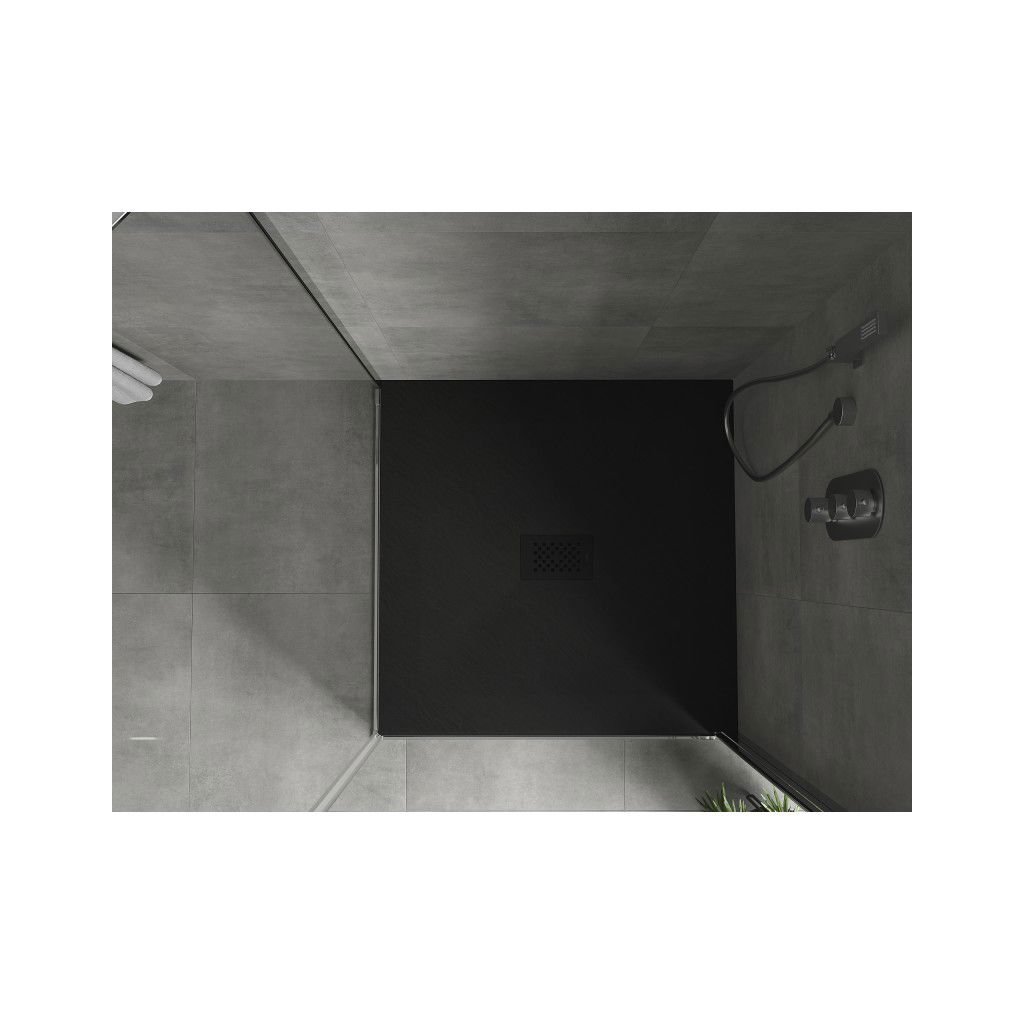 Mexen Hugo, négyzet alakú zuhanytálca SMC 100 x 100 cm, fekete, fekete huzat, 42701010-B