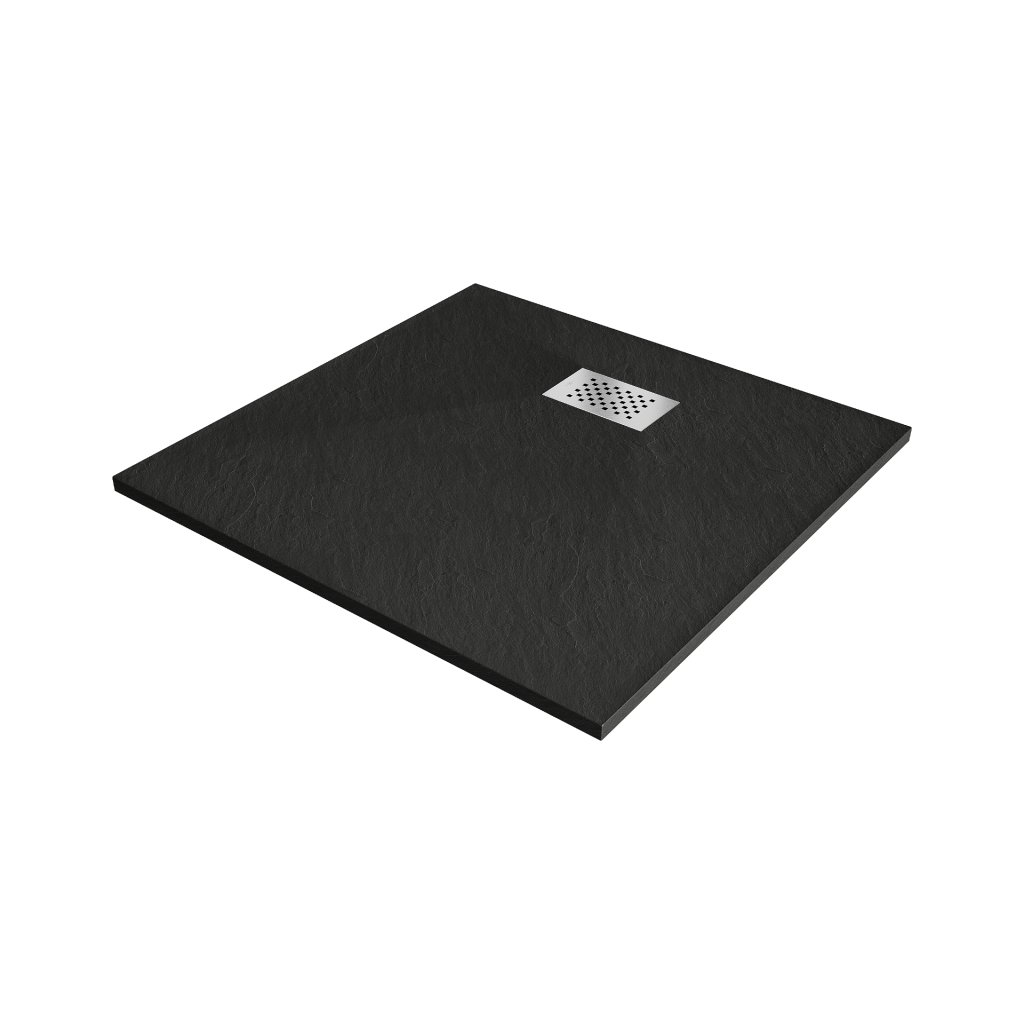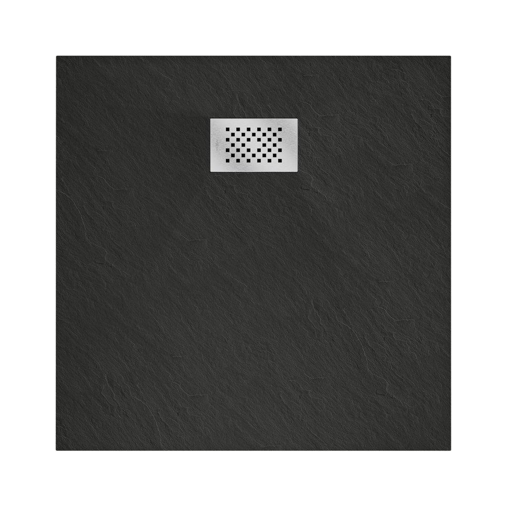 Mexen Hugo, négyzet alakú zuhanytálca SMC 80 x 80 cm, fekete, acél huzat, 42708080-X