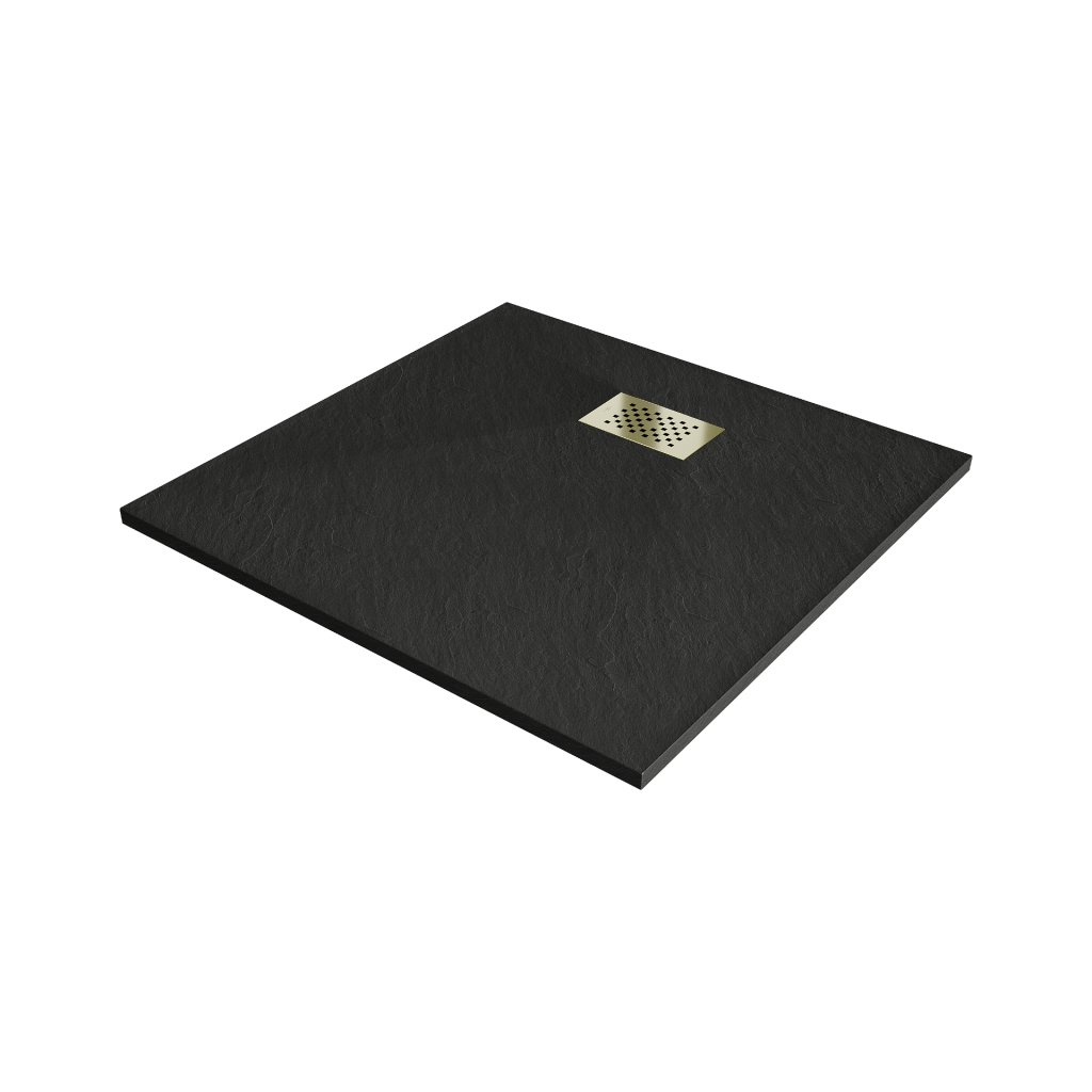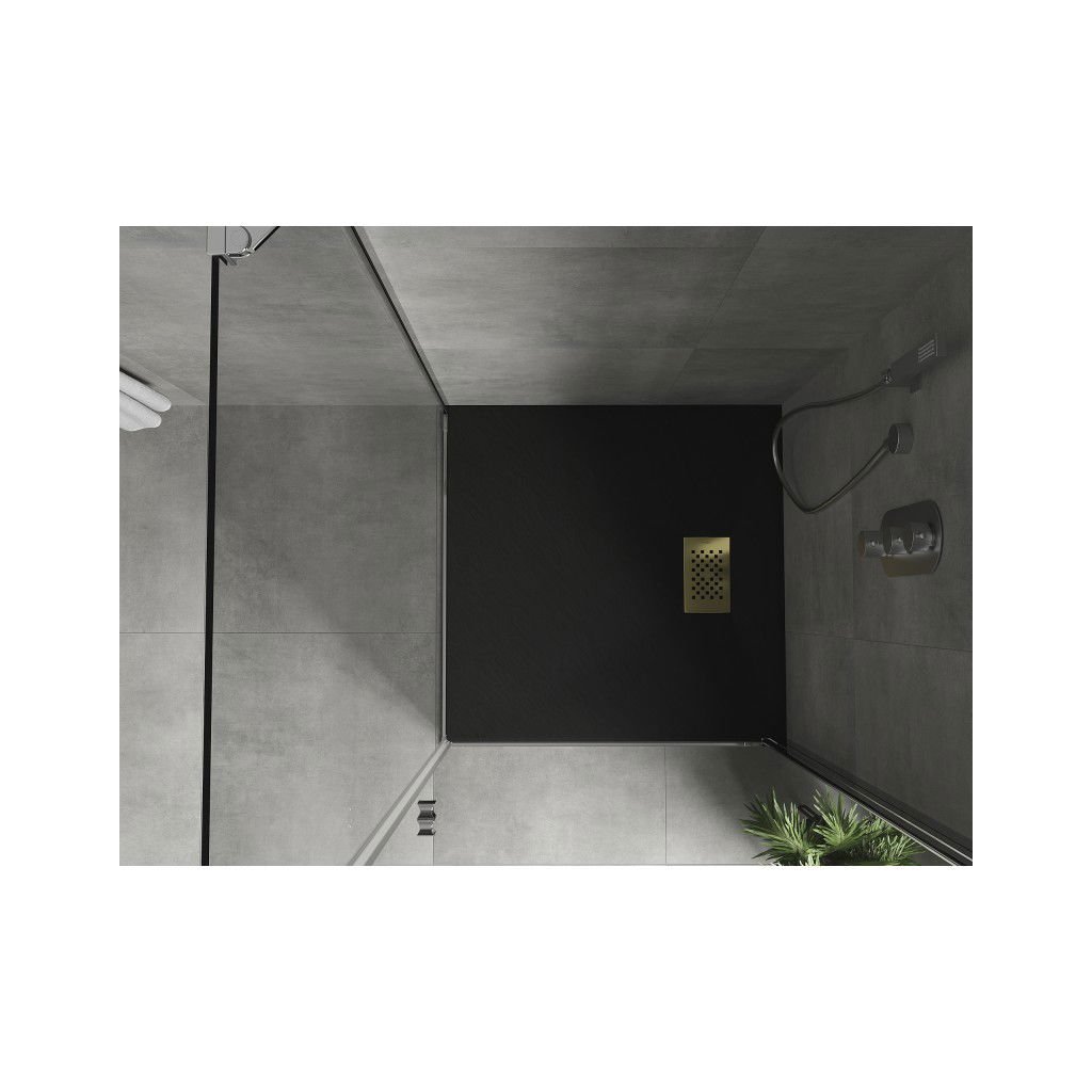 Mexen Hugo, négyzet alakú zuhanytálca SMC 90 x 90 cm, fekete, arany kupak, 42709090-G