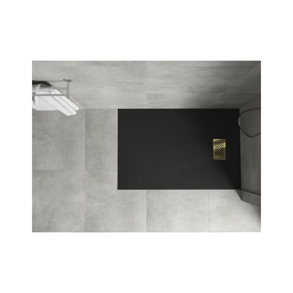 Mexen Hugo, téglalap alakú zuhanytálca SMC 100 x 70 cm, fekete, arany kupak, 42707010-G