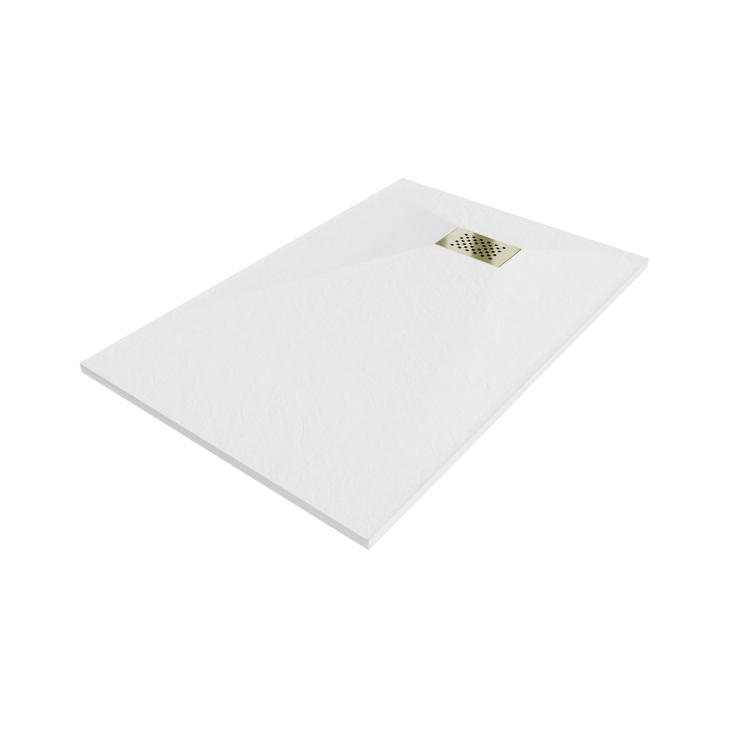 Mexen Hugo, téglalap alakú zuhanytálca SMC 120 x 80 cm, fehér, arany kupak, 42108012-G