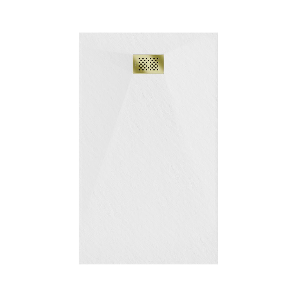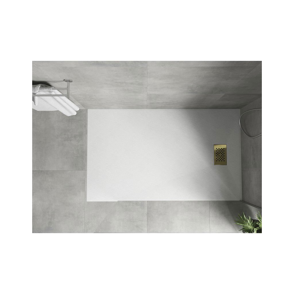 Mexen Hugo, téglalap alakú zuhanytálca SMC 140 x 70 cm, fehér, arany huzat, 42107014-G