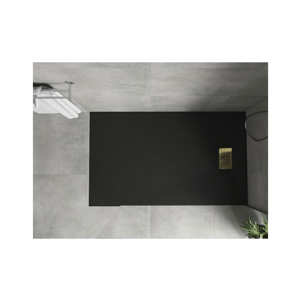 Mexen Hugo, téglalap alakú zuhanytálca SMC 150 x 70 cm, fekete, arany kupak, 42707015-G