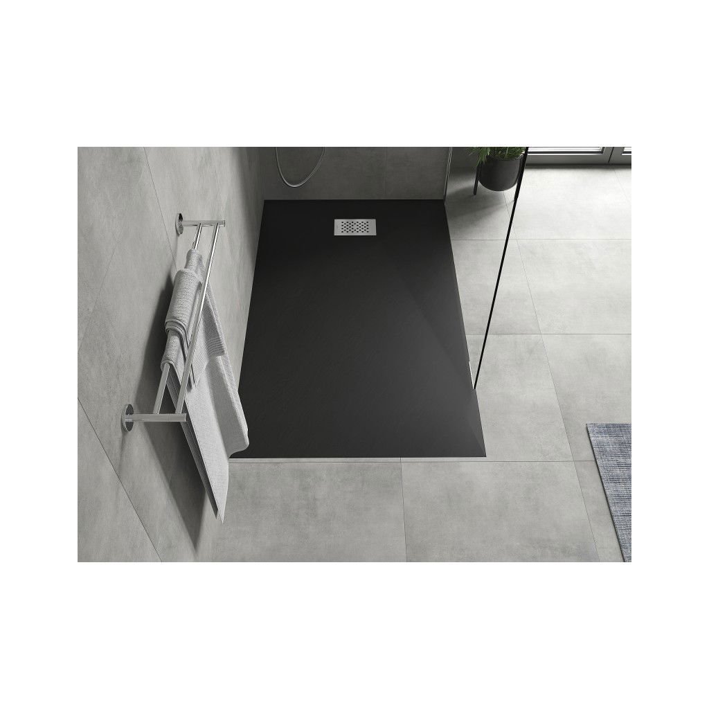 Mexen Hugo, téglalap alakú zuhanytálca SMC 160 x 70 cm, fekete, acél huzat, 42707016-X