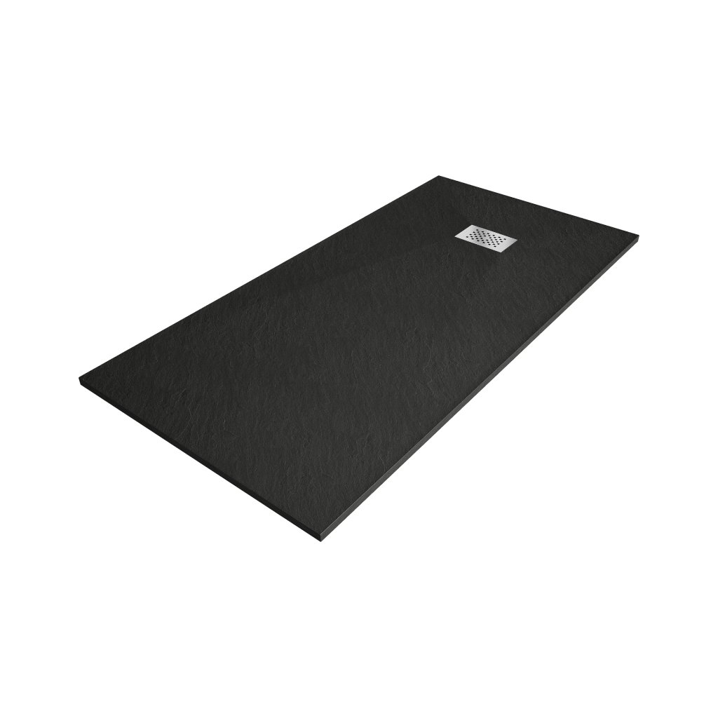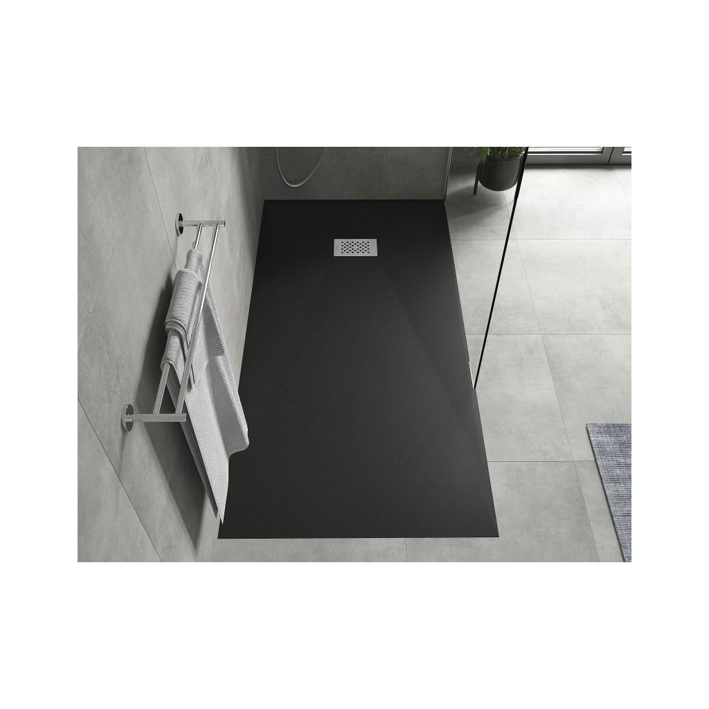 Mexen Hugo, téglalap alakú zuhanytálca SMC 180 x 80 cm, fekete, acél huzat, 42708018-X