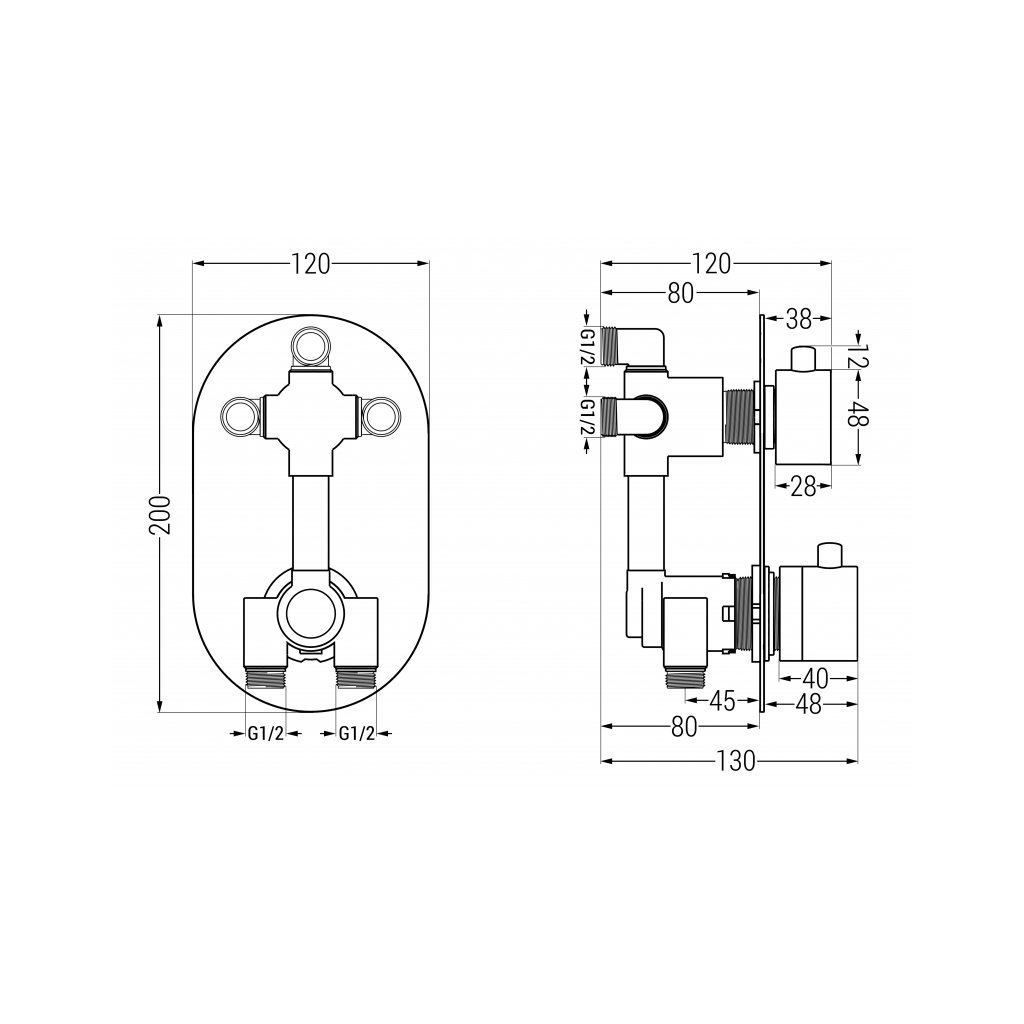 - Csatlakozás: 2x 1/2 "bemenet és 3x 1/2" kimenet