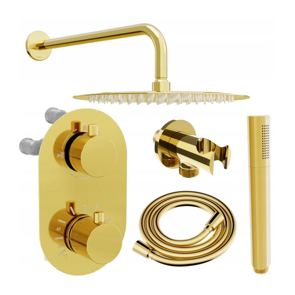Mexen Kai DR70 rejtett fürdőkád és zuhany szett esőzuhannyal 30 cm, arany, 77602DR7030-50