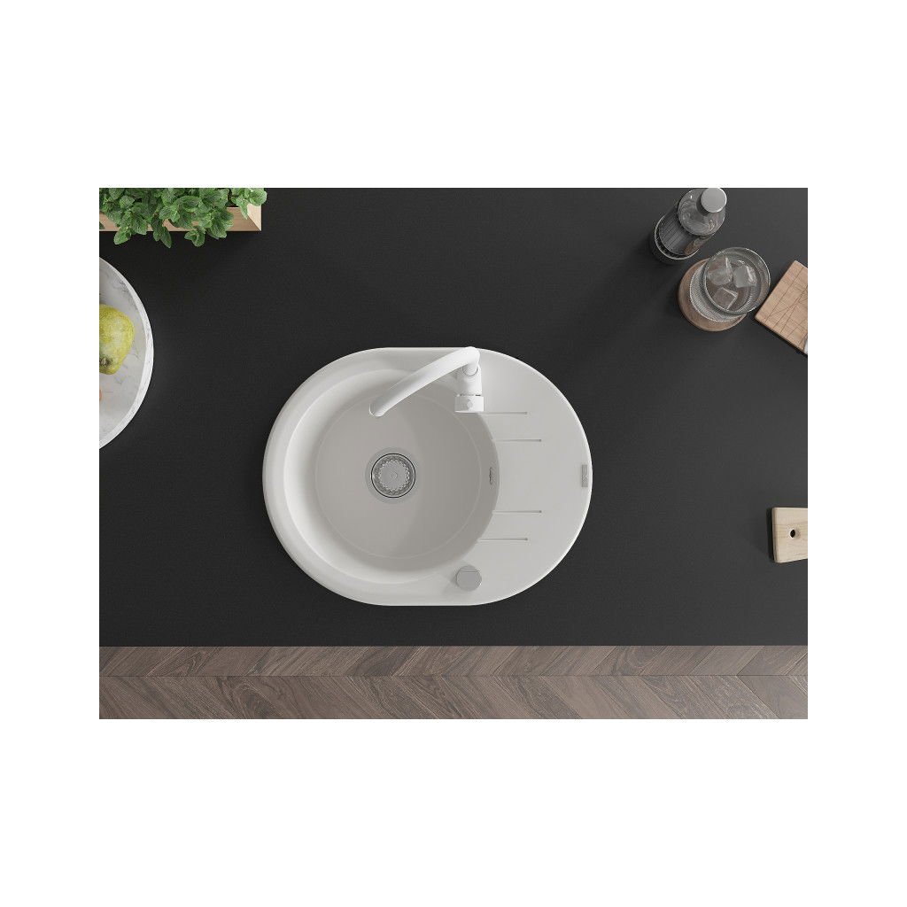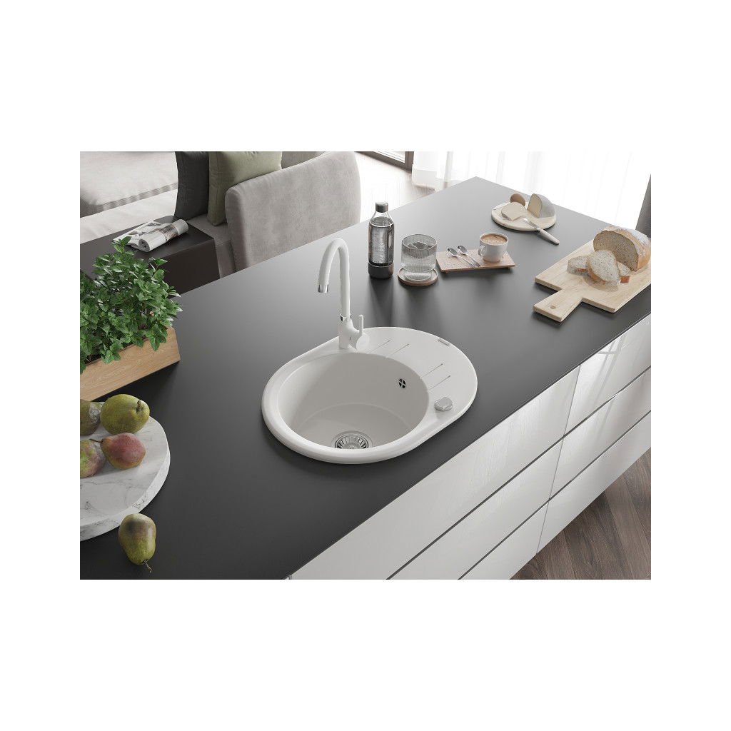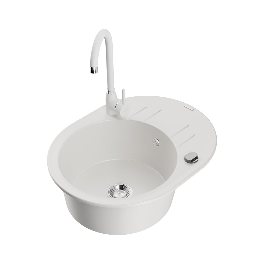 Mexen Kevin, gránit mosogató 586x458x190 mm, 1 kamrás és fehér matt Telma csaptelep, fehér, 6517-20-670200-20