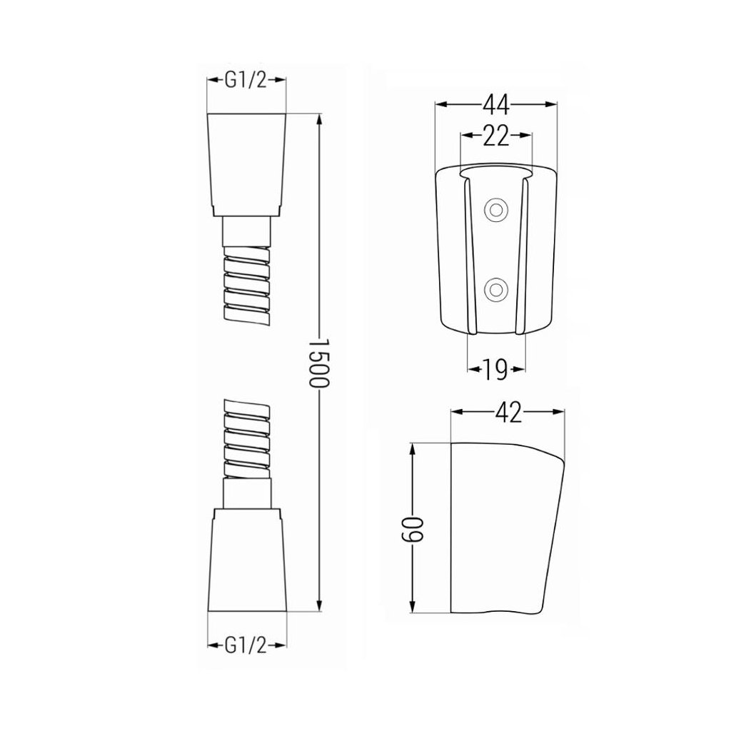 kézizuhany készlet + tömlő + 1 pontos rögzítés
