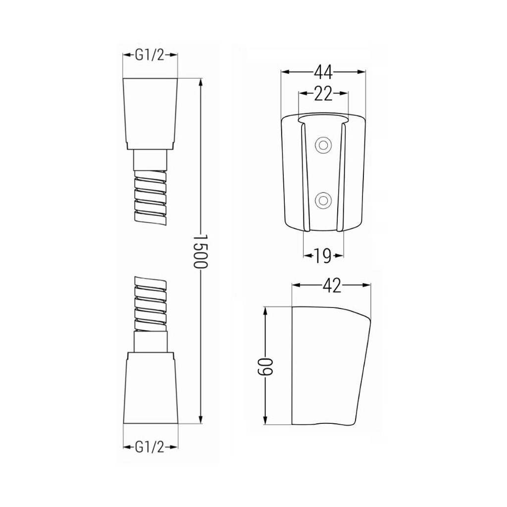 kézizuhany készlet + tömlő + 1 pontos rögzítés