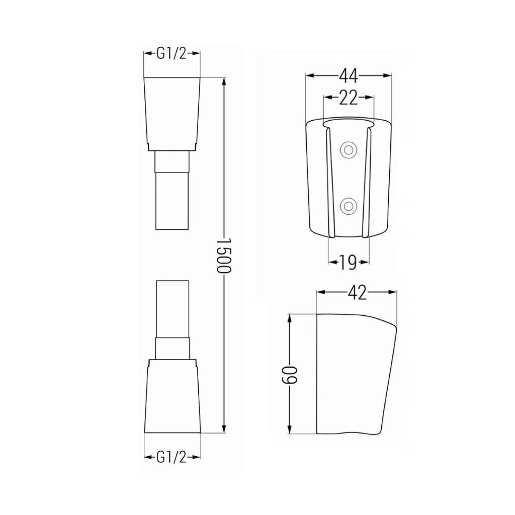 kézizuhany készlet + tömlő + 1 pontos rögzítés