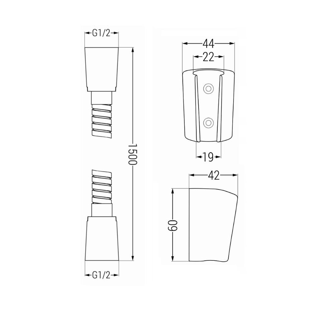 kézizuhany készlet + tömlő + 1 pontos rögzítés
