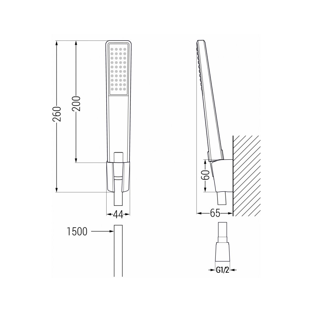 kézizuhany készlet + tömlő + 1 pontos rögzítés