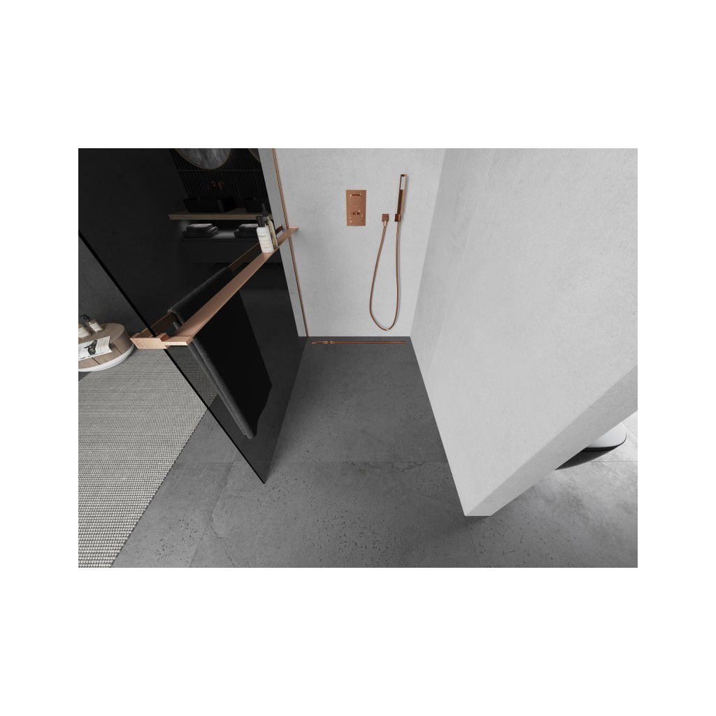 -5% a REA termékekre (kedvezménykód: REA-5) -5% a konyhai mosogatóra és a kiegészítőkre Sink Quality és Gamma (kedvezménykód: SINK-5) -4% az ERGA fürdőszobai kiegészítőkre és termékekre (kedvezménykód: ERGA-4) -4% Novaservis és Ferro termékekre (kedvezménykód: NOVASERVIS-4) -3% a Aqualine termékekre (kedvezménykód: Aqualine-3)Mexen Kioto+ L, Walk-In zuhany paraván polccal és akasztóval 110 x 200 cm, 8mm szürke üveg, réz matt profil, 800-110-123-65-40