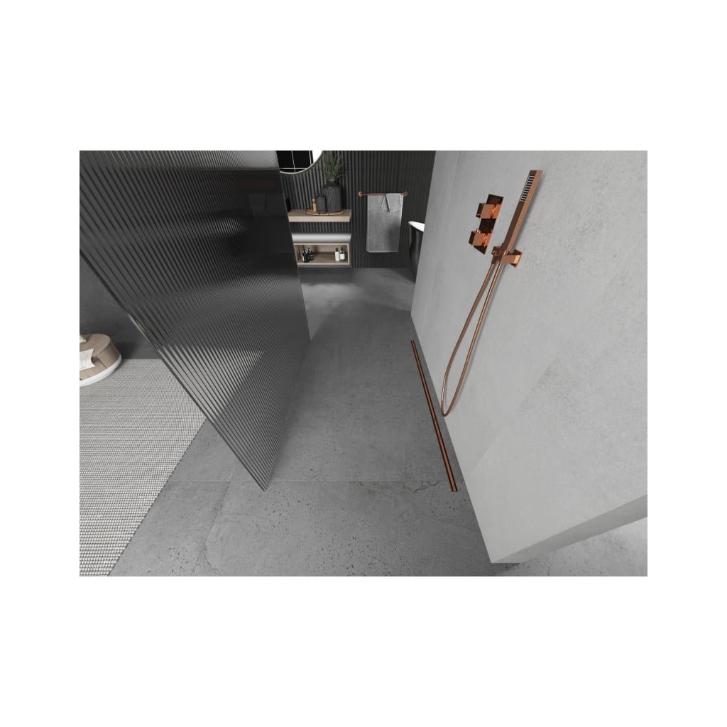 Mexen Kioto, Walk-In zuhany paraván 100 x 200 cm, 8 mm-es üveg bordás mintával, rózsa arany profil, 800-100-002-60-09