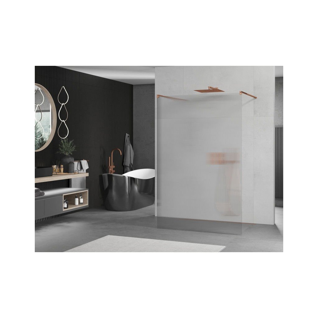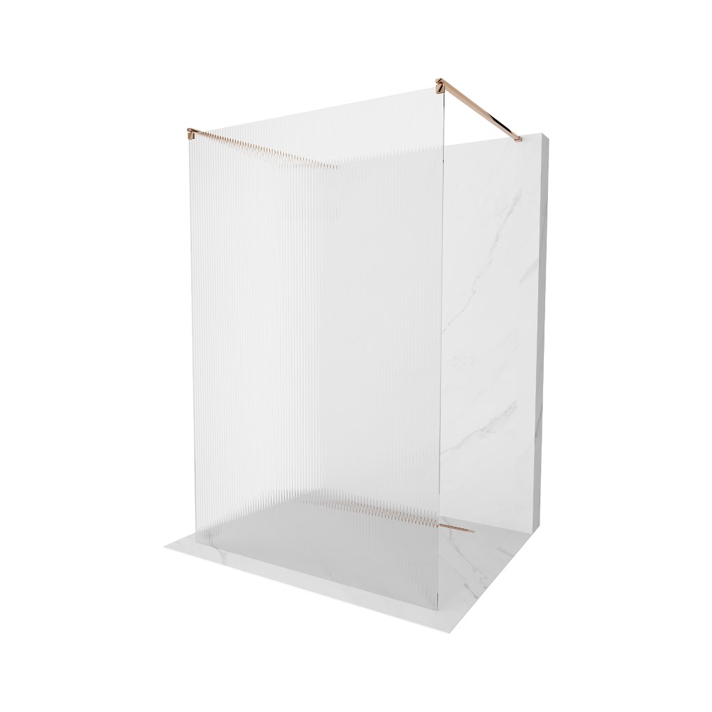 Mexen Kioto, Walk-In zuhany paraván 140 x 200 cm, 8 mm-es üveg bordás mintával, rózsa arany profil, 800-140-002-60-09