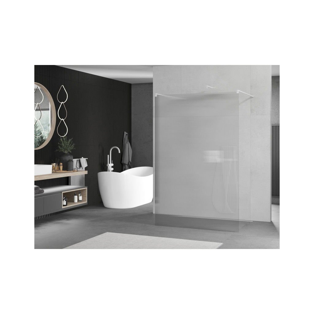 Mexen Kioto, Walk-In zuhanyparaván 100 x 200 cm, 8 mm-es üveg bordás mintával, fehér profil, 800-100-002-20-09