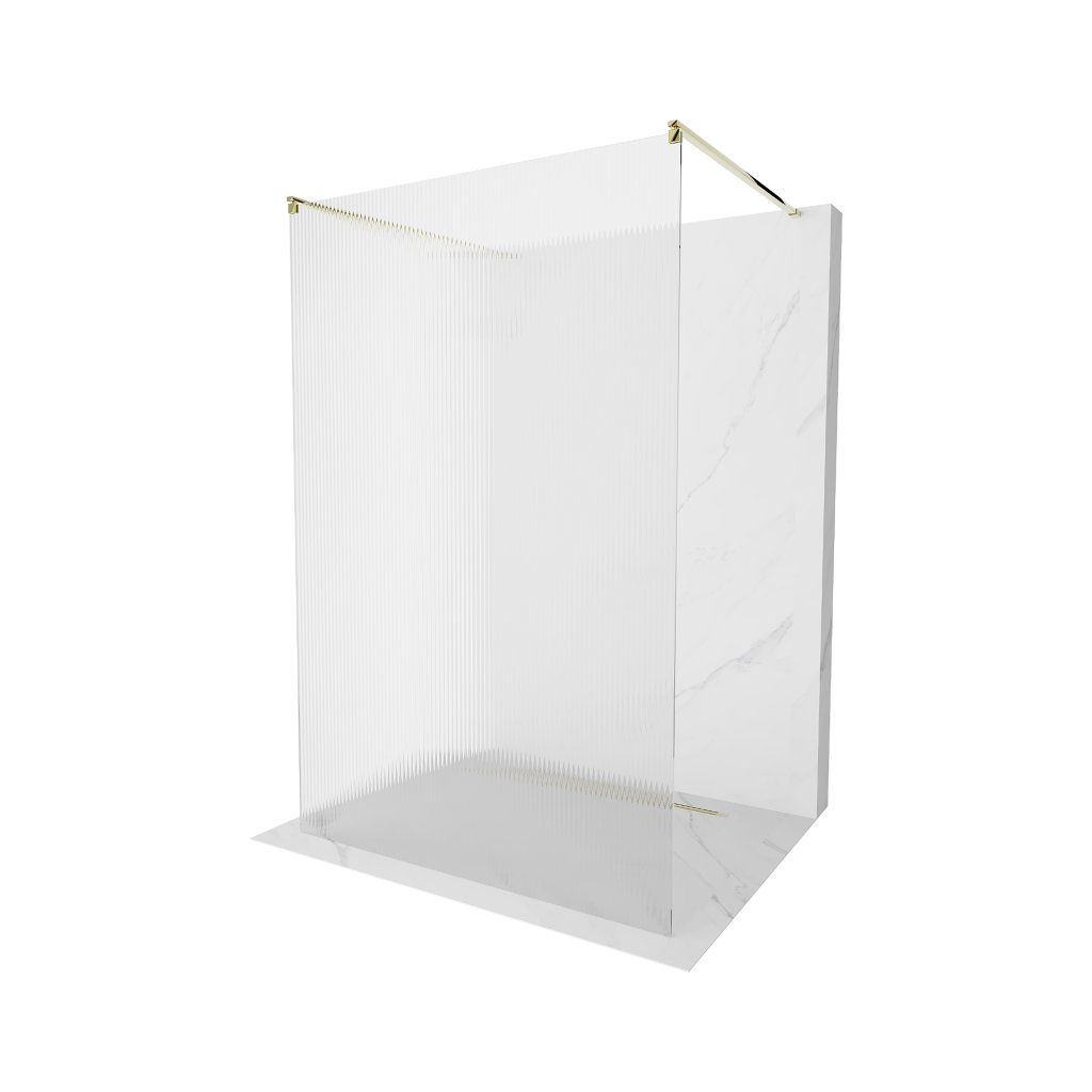 Mexen Kioto, Walk-In zuhanyparaván 110 x 200 cm, 8 mm-es üveg bordás mintával, arany profil, 800-110-002-50-09