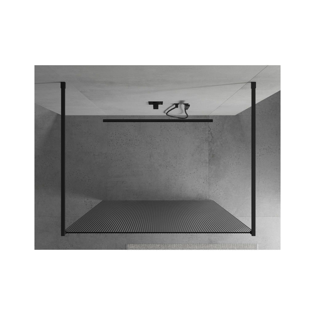 Mexen Kioto, Walk-In zuhanyparaván 130 x 200 cm, 8 mm-es üveg bordás mintával, fekete profil, 800-130-002-70-09