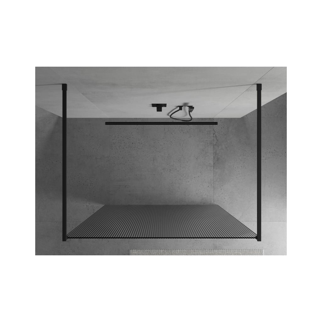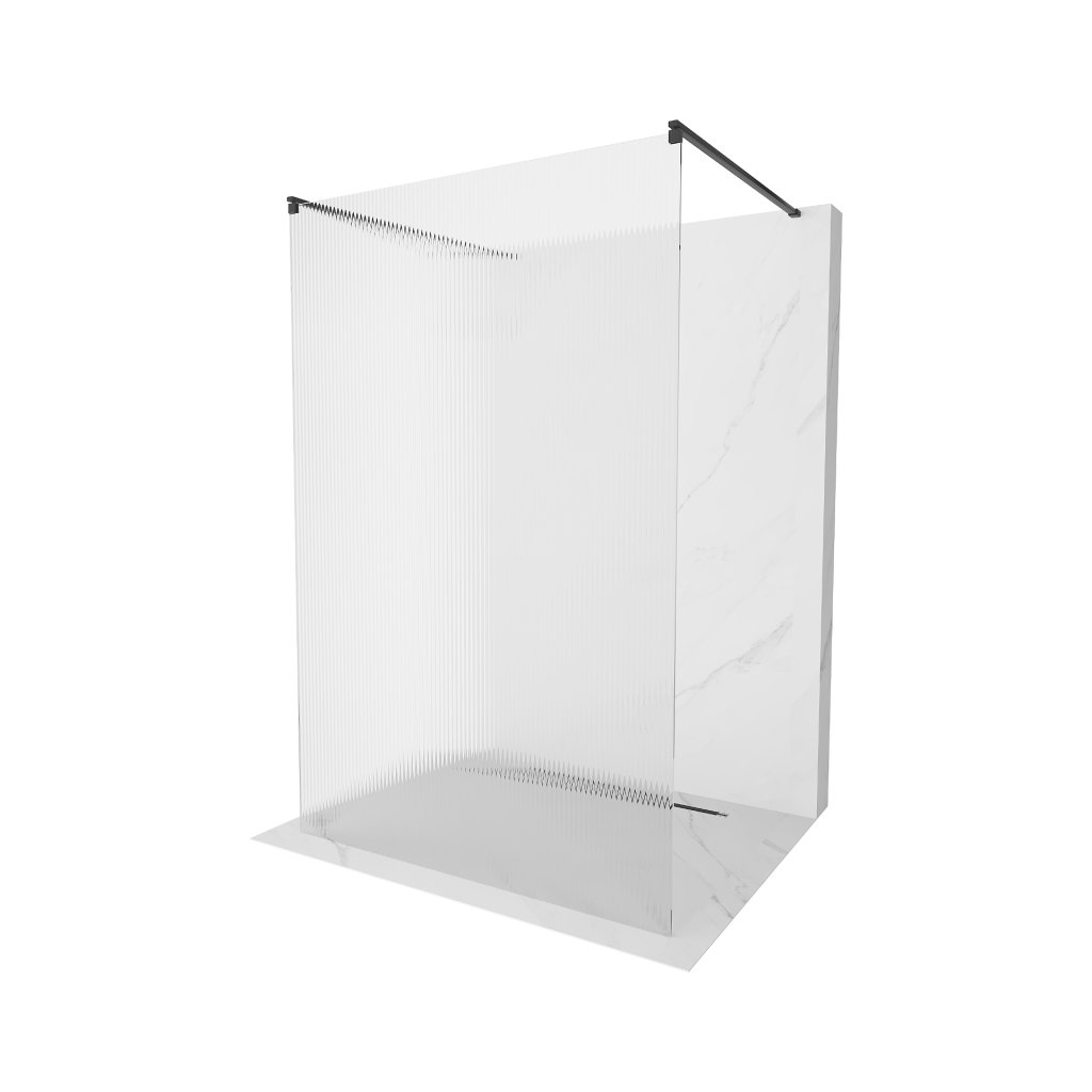 Mexen Kioto, Walk-In zuhanyparaván 140 x 200 cm, 8 mm-es üveg bordás mintával, fekete profil, 800-140-002-70-09
