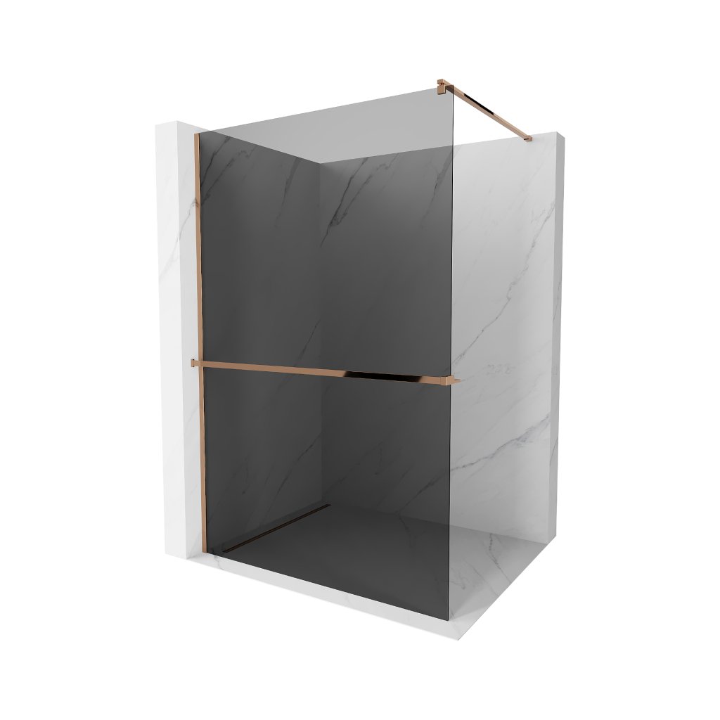 Mexen Kioto +, zuhany paraván polccal és törölközőtartóval 100 x 200 cm, 8mm szürke üveg, rózsa arany profil, 800-100-121-60-40