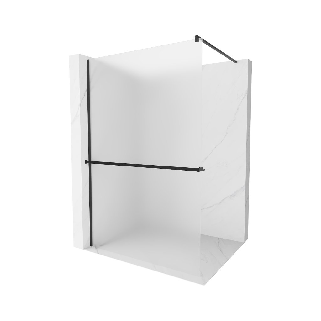 Mexen Kioto +, zuhany paraván polccal és törölközőtartóval 110 x 200 cm, 8 mm-es jegesedés üveg, fekete profil, 800-110-121-70-30