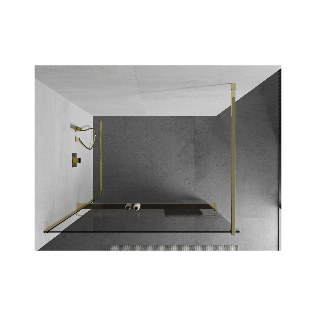 Mexen Kioto +, zuhany paraván polccal és törölközőtartóval 110 x 200 cm, 8mm átlátszó üveg, arany profil, 800-110-121-50-00