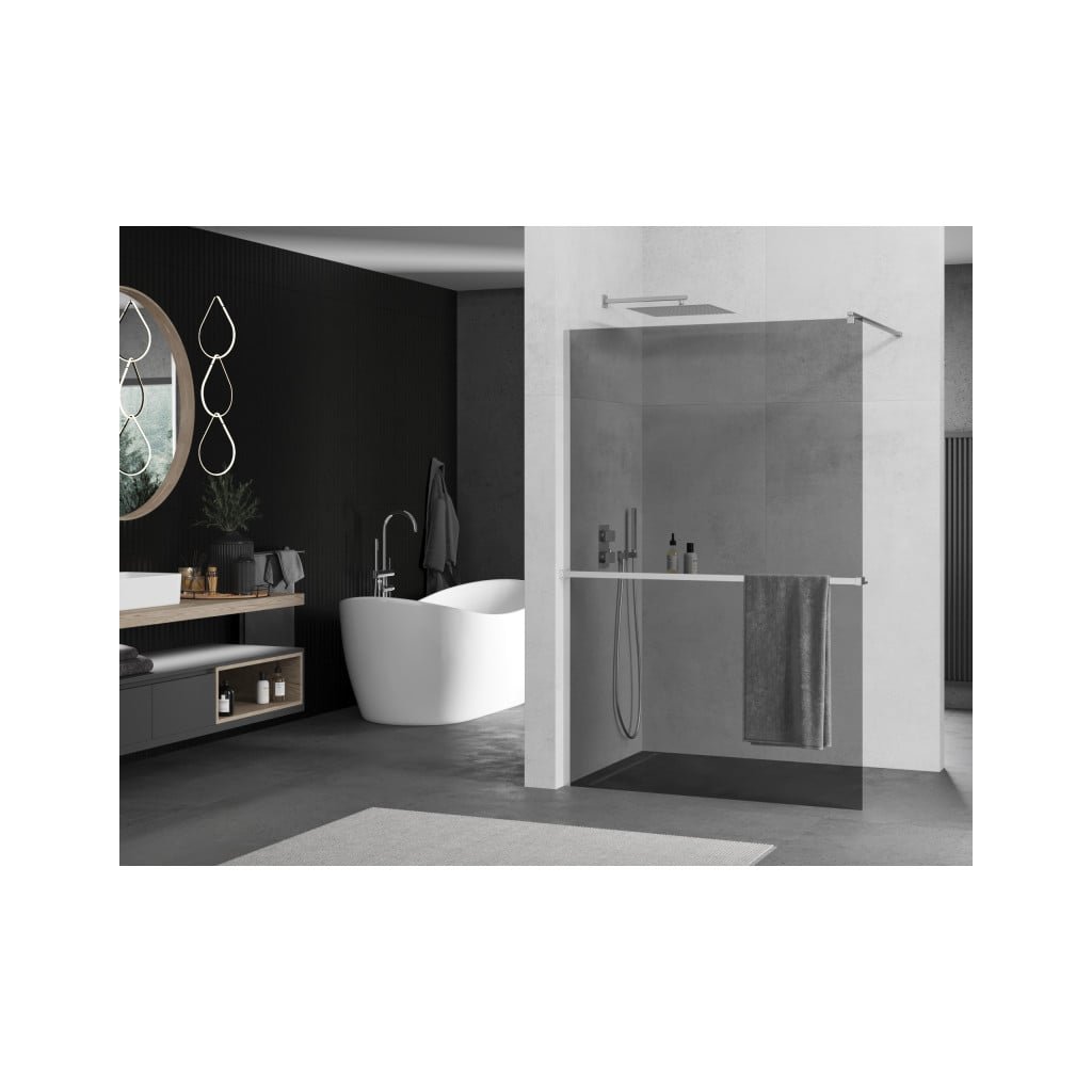 Mexen Kioto +, zuhany paraván polccal és törölközőtartóval 110 x 200 cm, 8mm szürke üveg, króm profil, 800-110-121-01-40