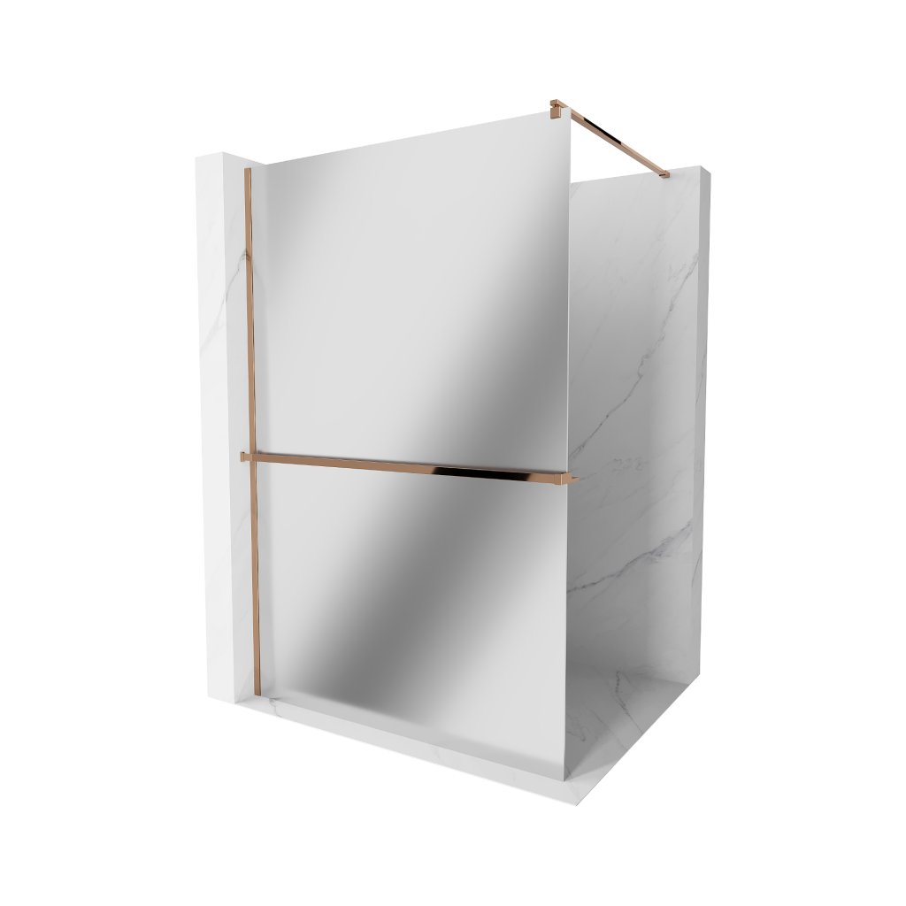 Mexen Kioto +, zuhany paraván polccal és törölközőtartóval 120 x 200 cm, 8 mm-es üvegmintás tükör, rózsa arany profil, 800-120-121-60-50