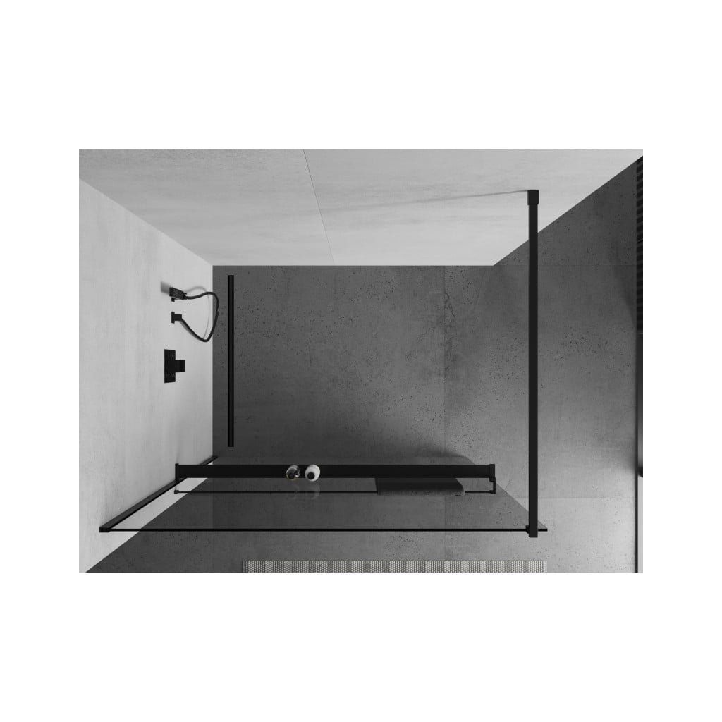Mexen Kioto +, zuhany paraván polccal és törölközőtartóval 120 x 200 cm, 8mm átlátszó üveg, fekete profil, 800-120-121-70-00