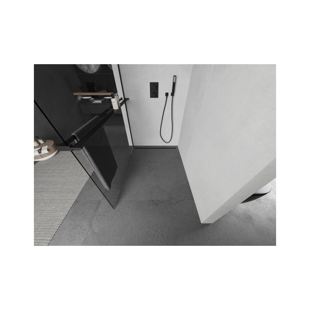 Mexen Kioto +, zuhany paraván polccal és törölközőtartóval 130 x 200 cm, 8mm átlátszó üveg, fekete profil, 800-130-121-70-00
