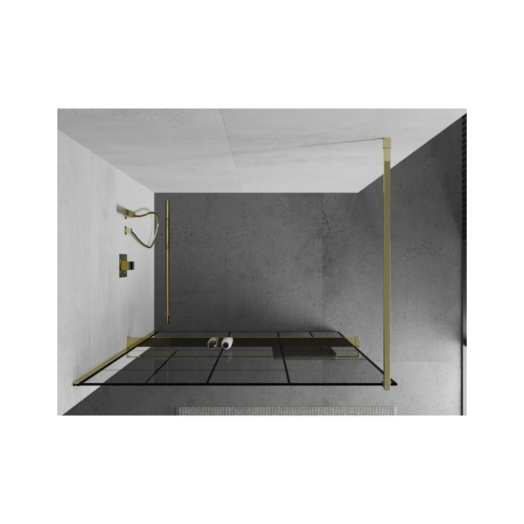 Mexen Kioto +, zuhany paraván polccal és törölközőtartóval 130 x 200 cm, 8mm átlátszó üvegmintás fekete, arany profil, 800-130-121-50-78