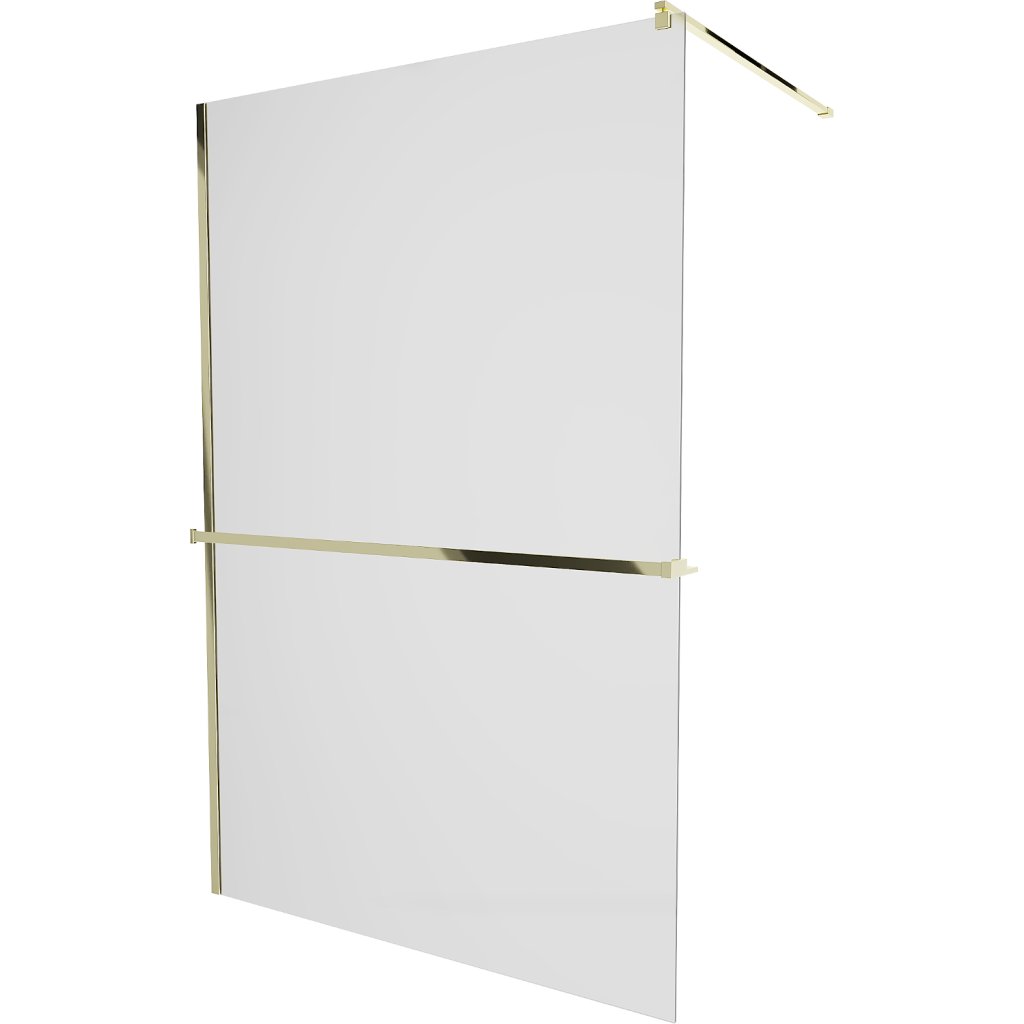 Mexen Kioto +, zuhany paraván polccal és törölközőtartóval 140 x 200 cm, 8 mm-es jegesedés üveg, arany profil, 800-140-121-50-30