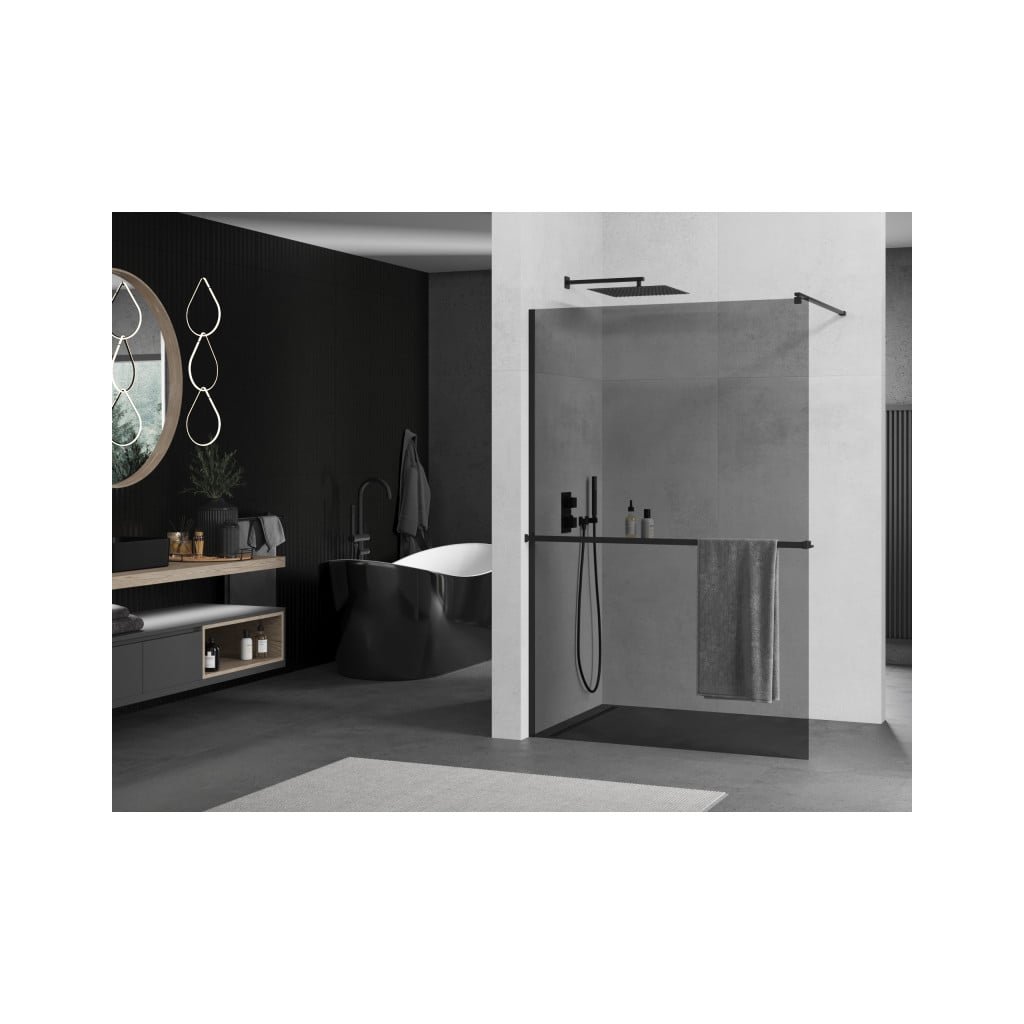 Mexen Kioto +, zuhany paraván polccal és törölközőtartóval 70 x 200 cm, 8mm szürke üveg, fekete profil, 800-070-121-70-40