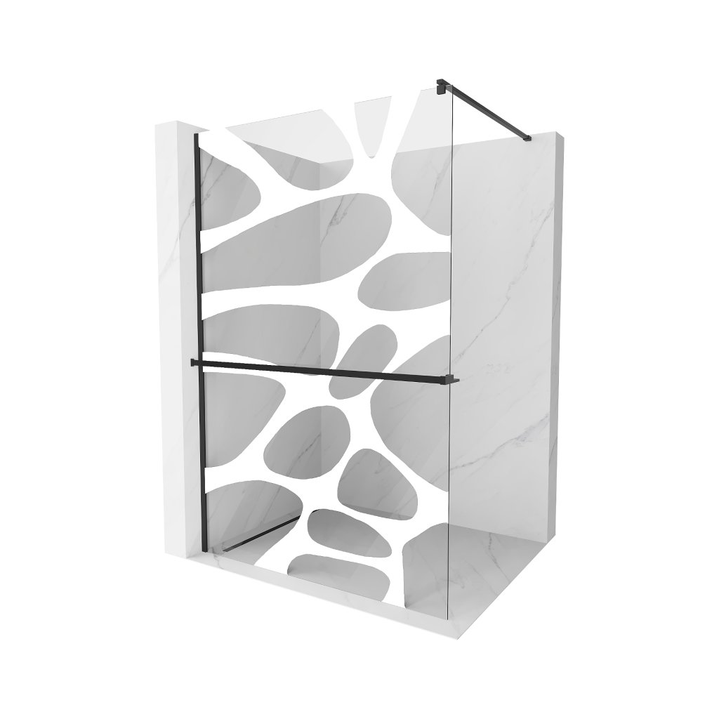 Mexen Kioto +, zuhany paraván polccal és törölközőtartóval 70 x 200 cm, 8mm üveg átlátszó üvegmintás fehér, fekete profil, 800-070-121-70-97