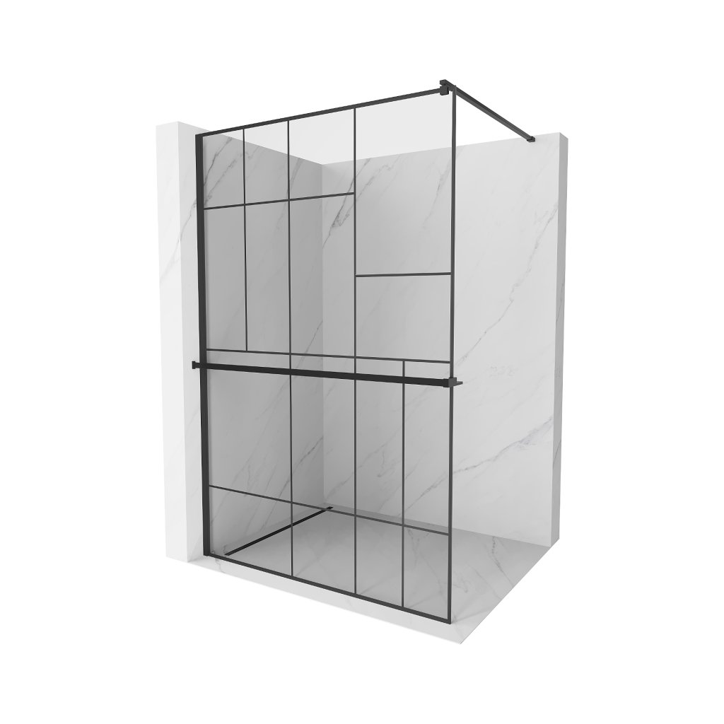 Mexen Kioto +, zuhany paraván polccal és törölközőtartóval 70 x 200 cm, 8mm üveg átlátszó üvegmintás fekete, fekete profil, 800-070-121-70-78