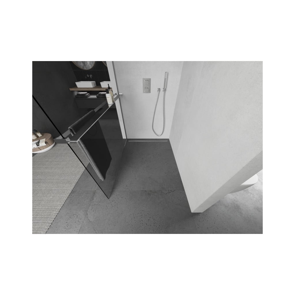A zuhanykabin univerzális és népszerű megoldás minden fürdőszobába. A paraván ajtó nélküli és tartalmaz egy rudat, amellyel a függöny felakasztható. A Kioto sorozat képernyője 8 mm-es edzett biztonsági üvegből készül, 200 cm magas. A felszerelés univerzális a zuhanytálcára vagy a csempére, jobbra vagy balra. A T-csatlakozó (nem tartozék) segítségével tetszőleges méretű stabilizáló rudak csatlakoztatása és nyitott zuhanykabin kialakítása lehetséges (a Kioto zuhanyparavánok 30-160 cm-es hosszban kaphatók). Minimális bejárati szélességként ebben az esetben javasoljuk, hogy legalább 50 cm-t hagyjon. A kínált zuhanyparaván egy dizájn fémpolcot tartalmaz a törölközők kívülről történő felakasztására és a zuhanyprogram elhelyezésére a kényelmes zuhany érdekében.